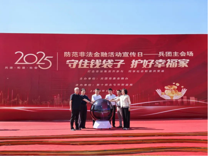 6月13日,由兵团党委金融办主办、第十师北屯市财政局承办的“2025防范非法金融活动宣传日——兵团主会场”活动启幕。活动以“守住钱袋子 护好幸福家”为主题,兵团通过多元举措全方位筑牢职工群众金融风险防线。